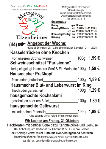 Unser "Angebot der Woche KW 44", können Sie hier runter laden. |