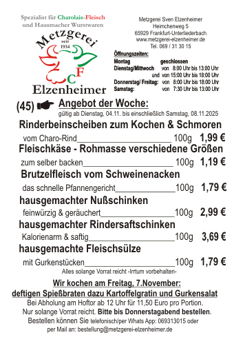 Unser "Angebot der Woche KW 45", können Sie hier runter laden.