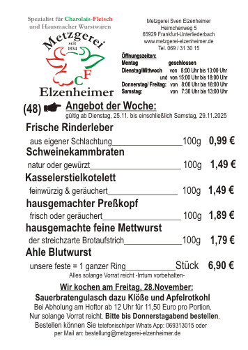 Unser "Angebot der Woche KW 48", können Sie hier runter laden. |
