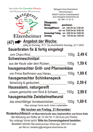 Unser "Angebot der Woche KW 47", können Sie hier runter laden. |
