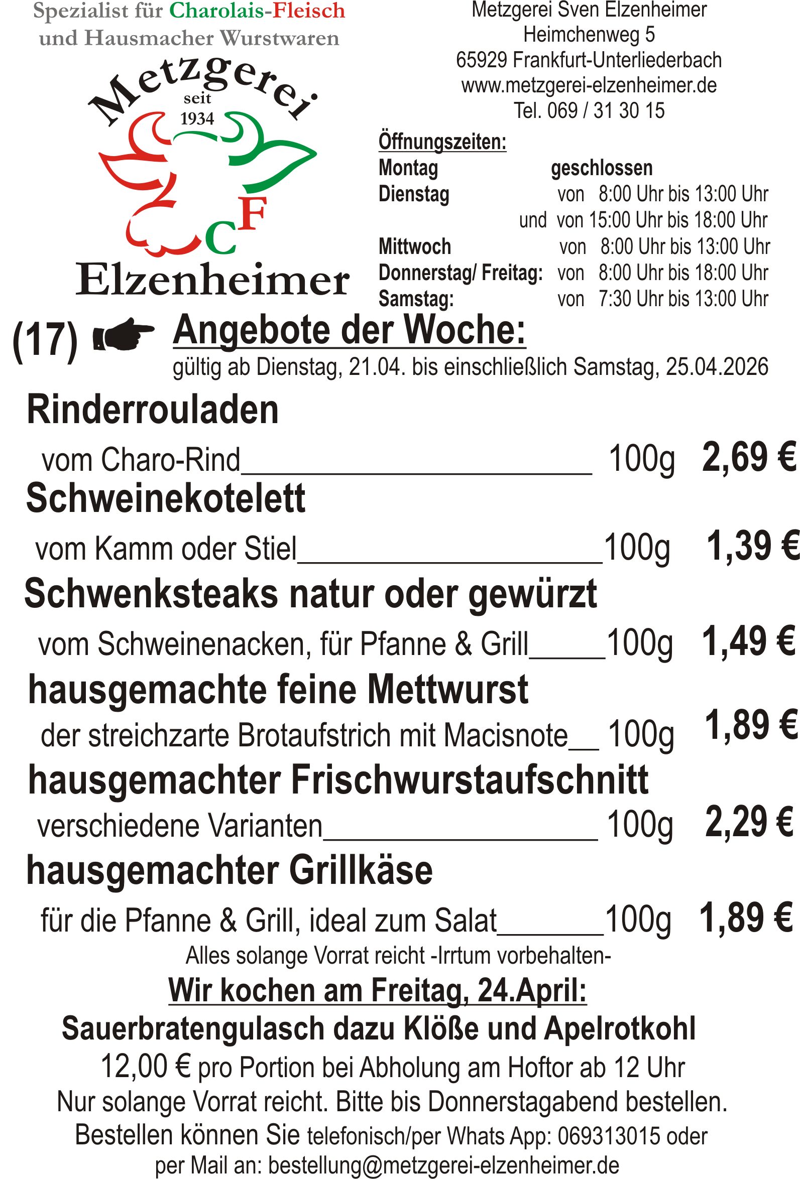 Unser "Angebot der Woche KW 17,"können Sie hier runter laden. |