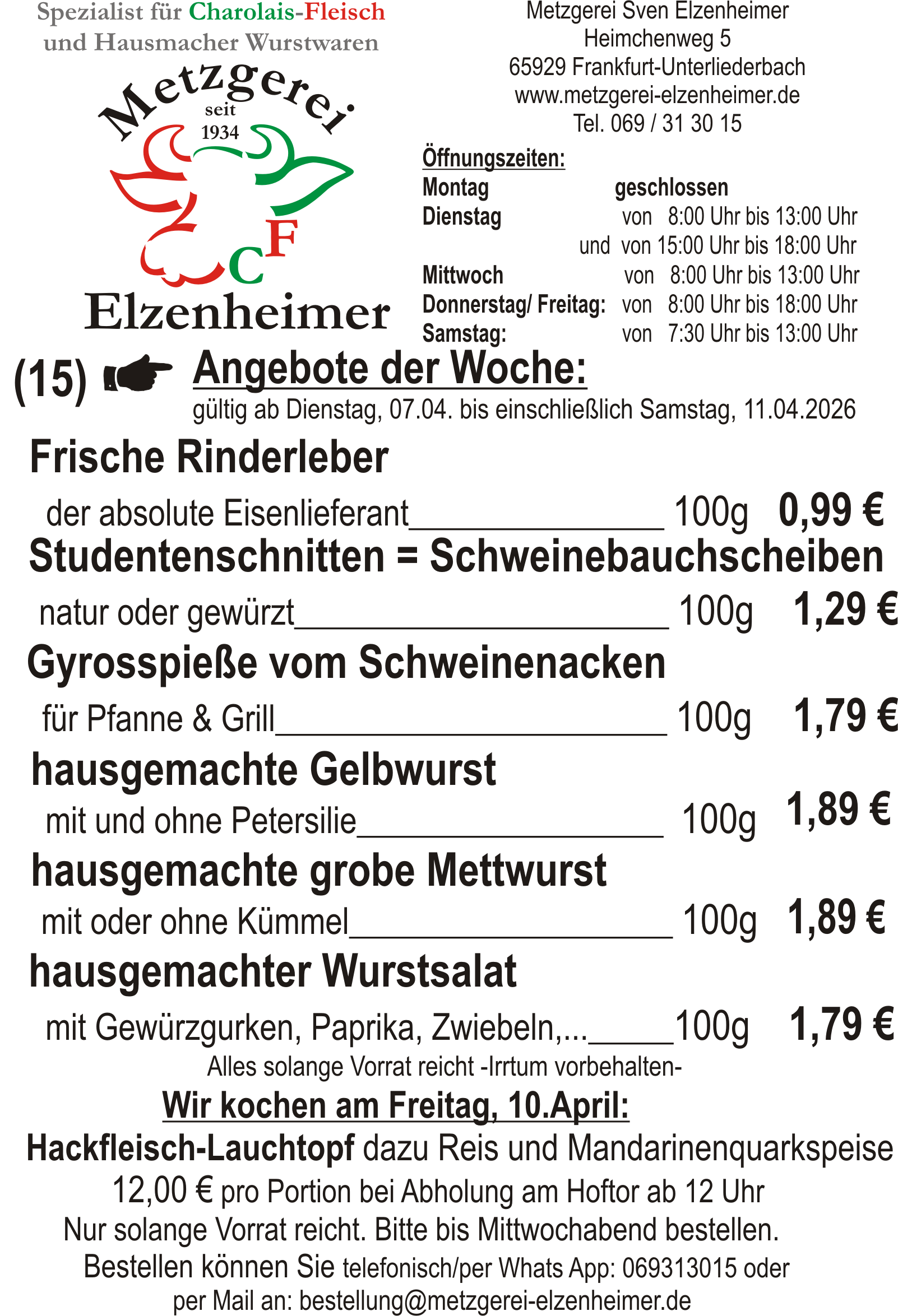 Unser "Angebot der Woche KW 15", können Sie hier runter laden.