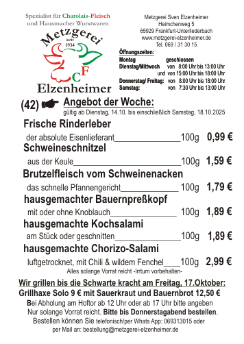 Unser "Angebot der Woche KW 42", können Sie hier runter laden. |