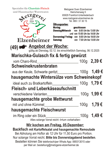 Unser "Angebot der Woche KW 49", können Sie hier runter laden. |